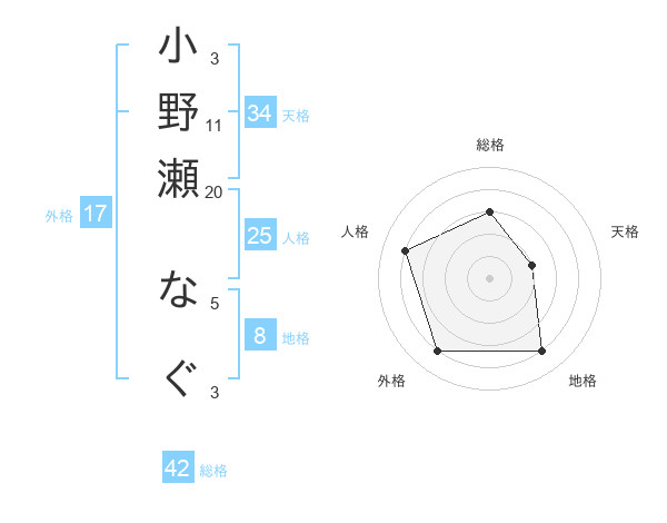小野瀬 なぐさんを姓名の画数から五運を鑑定