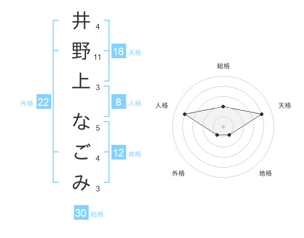 井野上 なごみさんを姓名の画数から五運を鑑定