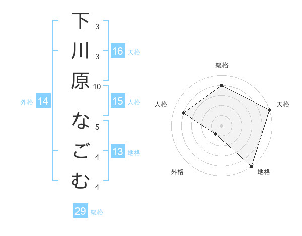 下川原 なごむさんの総格は29画の4点!