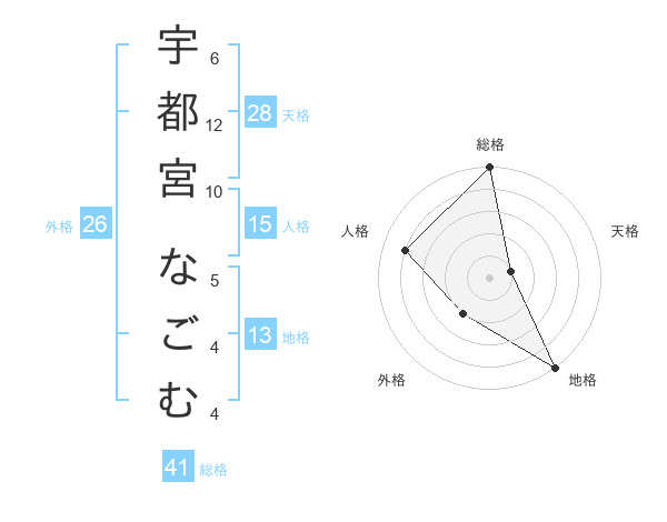 宇都宮 なごむさんを姓名の画数から五運を鑑定