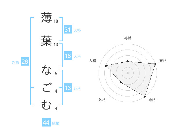 薄葉 なごむさんの地格は13画の5点!