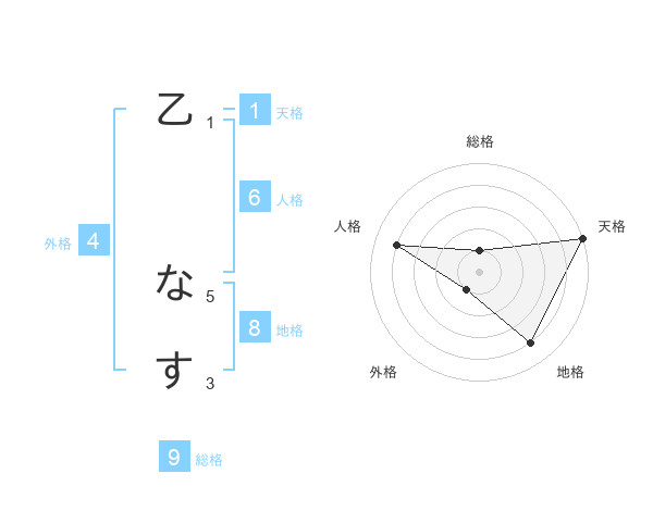 乙 なすさんの天格は1画の5点!