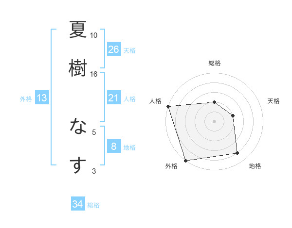 夏樹 なすさんの外格は13画の5点!