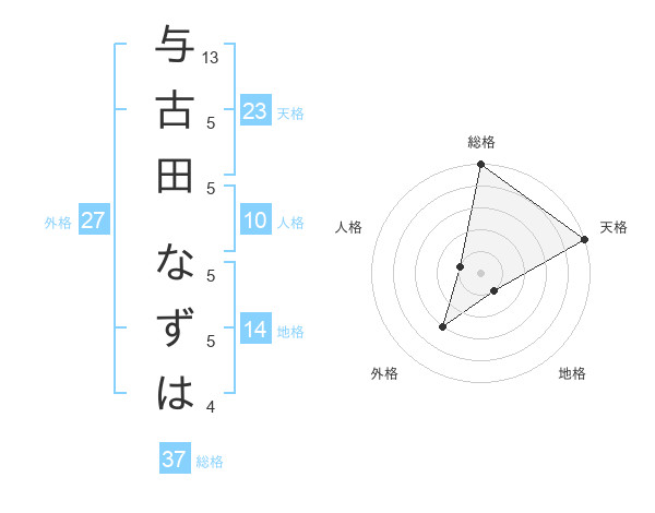 与古田 なずはさんを姓名の画数から五運を鑑定
