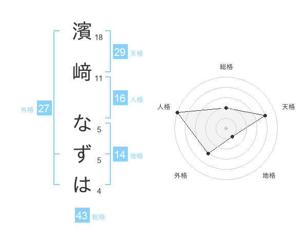 濱﨑 なずはさんの総格は43画の2点!