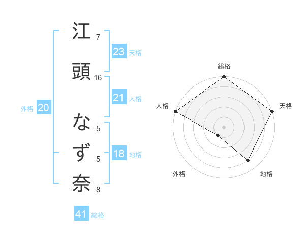 江頭 なず奈さんを姓名の画数から五運を鑑定