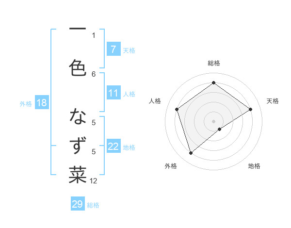 一色 なず菜さんを姓名の画数から五運を鑑定