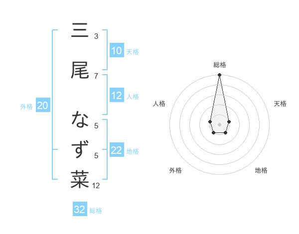 三尾 なず菜さんを姓名の画数から五運を鑑定