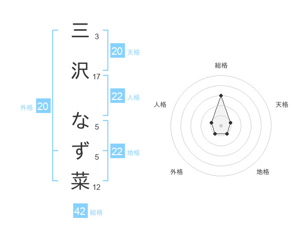 三沢 なず菜さんを姓名の画数から五運を鑑定