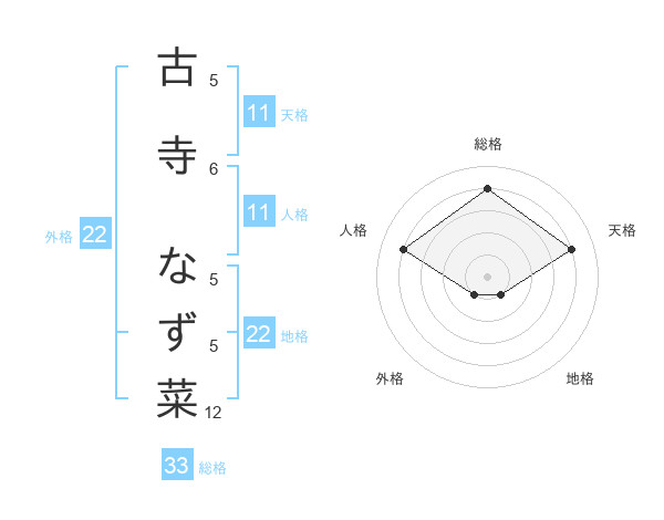 古寺 なず菜さんの総格は33画の4点!