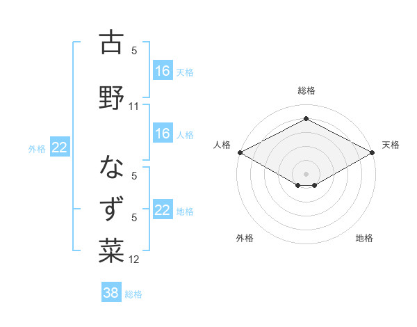 古野 なず菜さんの総格は38画の4点!