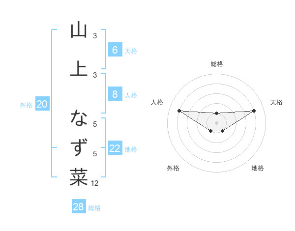 山上 なず菜さんを姓名の画数から五運を鑑定