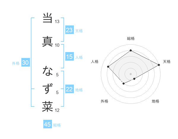 当真 なず菜さんの総格は45画の4点!