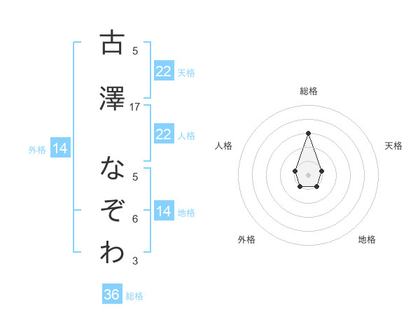 古澤 なぞわさんを姓名の画数から五運を鑑定