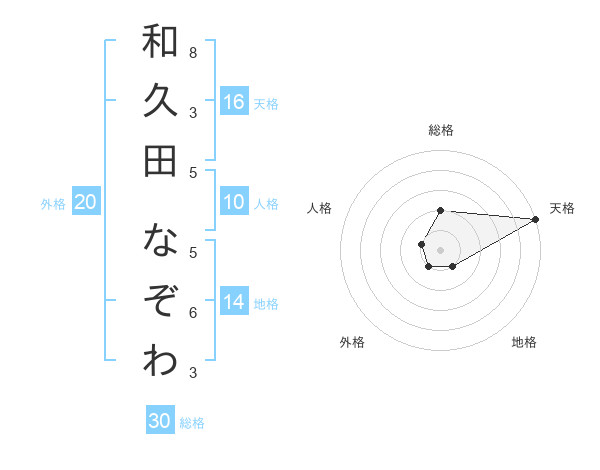 和久田 なぞわさんを姓名の画数から五運を鑑定