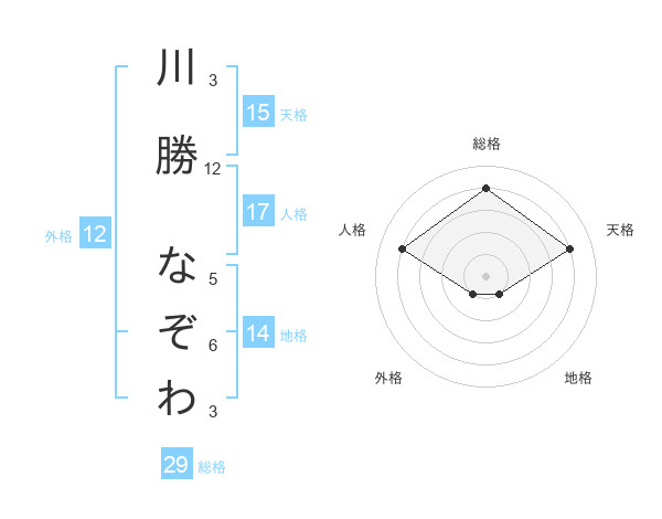 川勝 なぞわさんの天格は15画の4点!