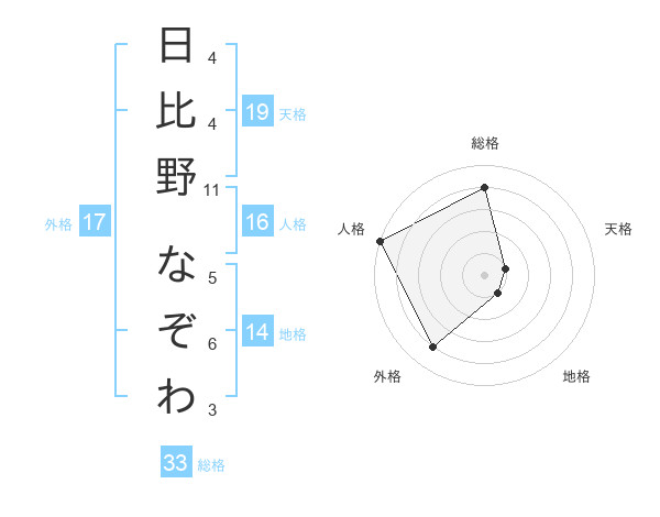 日比野 なぞわさんを姓名の画数から五運を鑑定