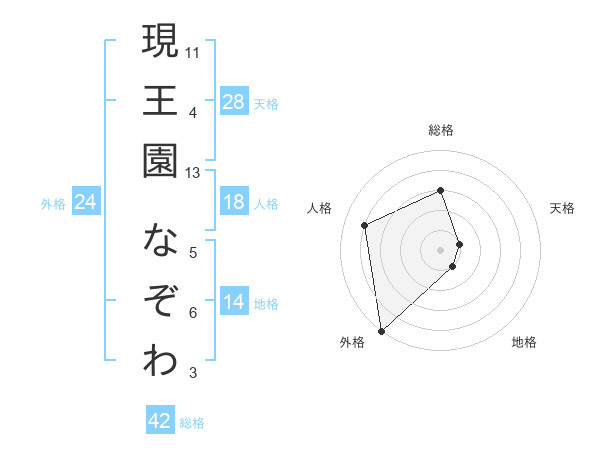 現王園 なぞわさんを姓名の画数から五運を鑑定