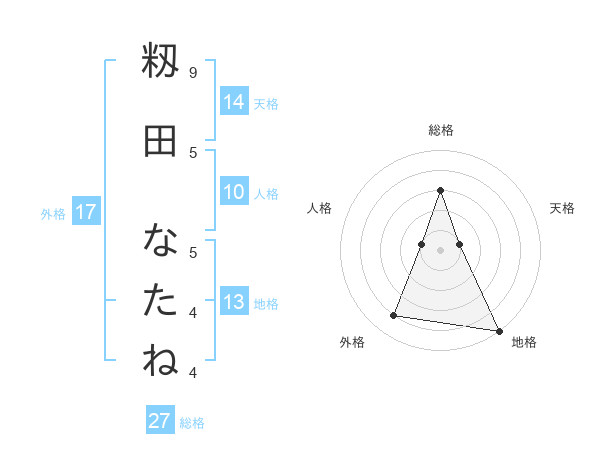 籾田 なたねさんの総格は27画の3点!