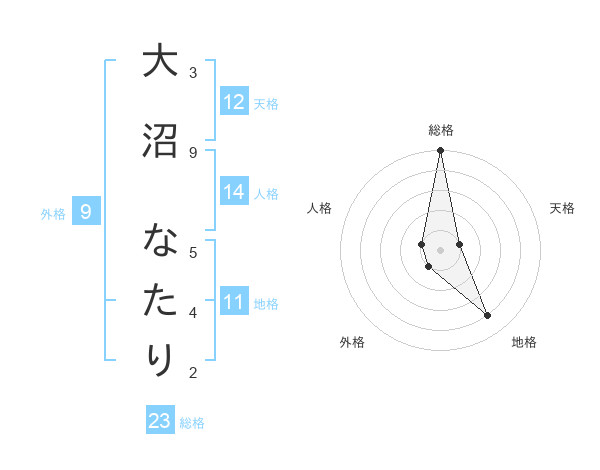大沼 なたりさんを姓名の画数から五運を鑑定