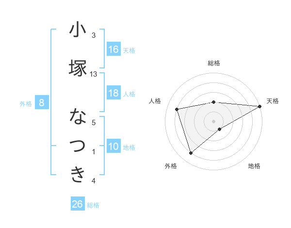 小塚 なつきさんを姓名の画数から五運を鑑定