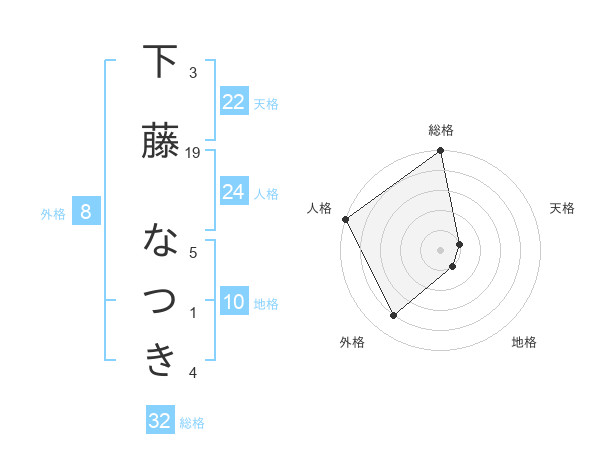 下藤 なつきさんの総格は32画の5点