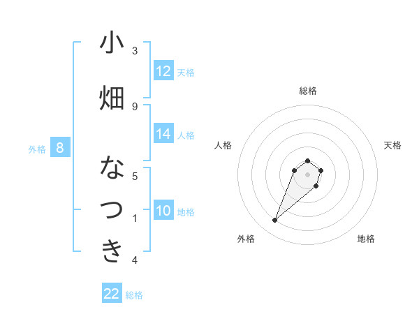 小畑 なつきさんを姓名の画数から五運を鑑定