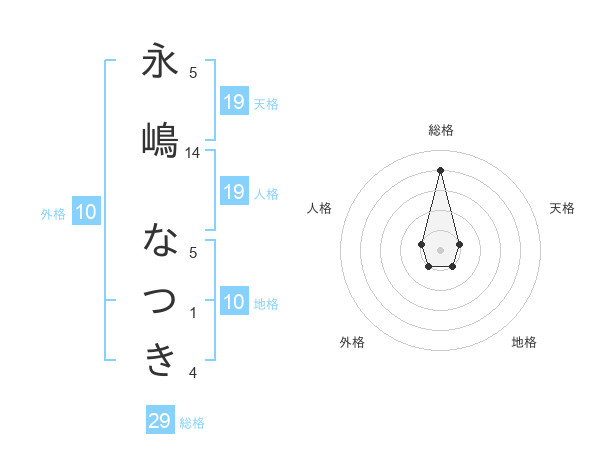 永嶋 なつきさんの総格は29画の4点!