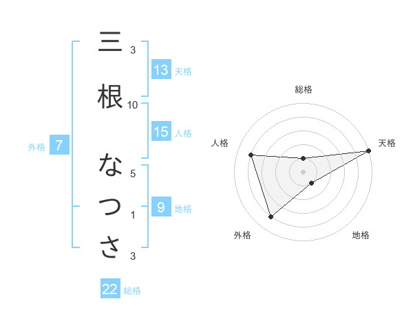 三根 なつささんの天格は13画の5点!