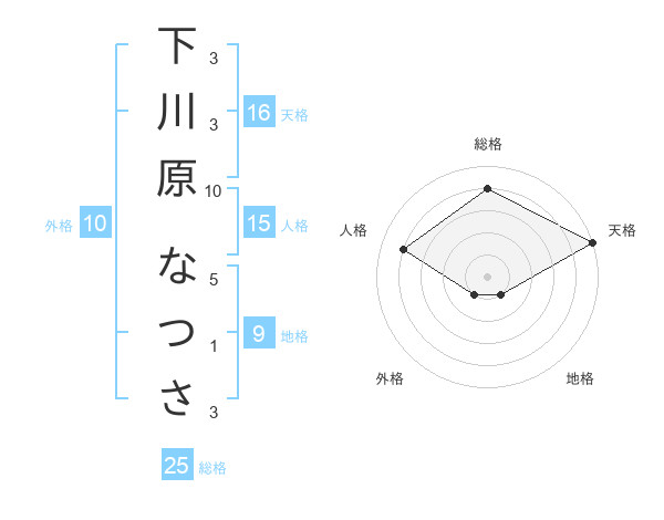 下川原 なつささんの天格は16画の5点!