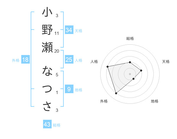 小野瀬 なつささんの外格は18画の4点!