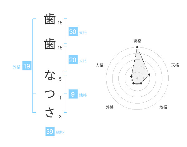 歯歯 なつささんを姓名の画数から五運を鑑定