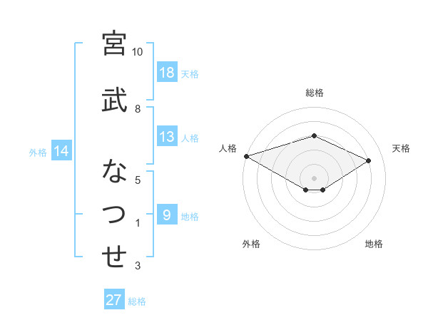 宮武 なつせさんの総格は27画の3点!