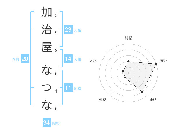 加治屋 なつなさんを姓名の画数から五運を鑑定