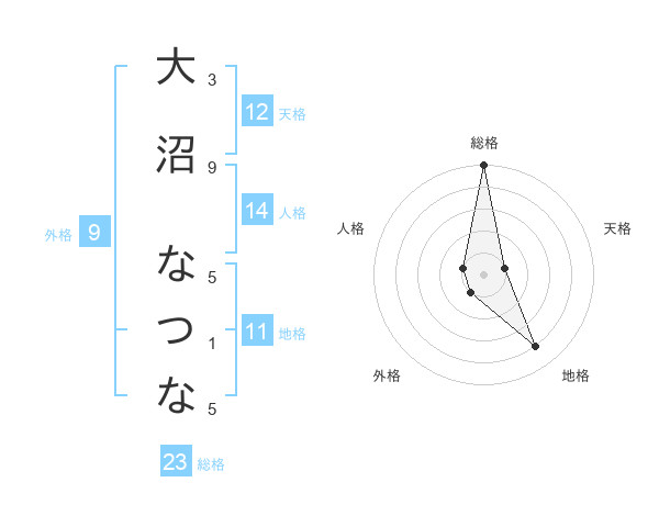大沼 なつなさんを姓名の画数から五運を鑑定