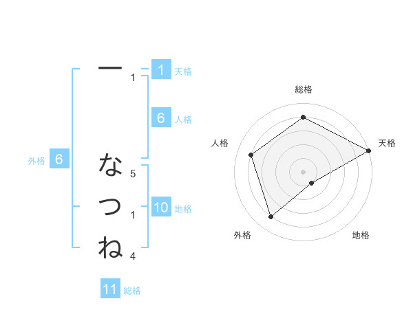 一 なつねさんの総格は11画の4点!