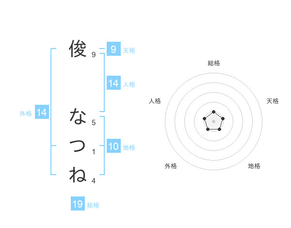 俊 なつねさんの外格は14画の1点!