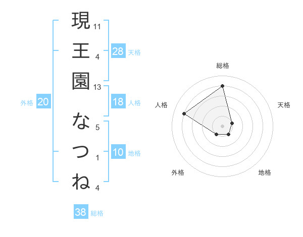 現王園 なつねさんを姓名の画数から五運を鑑定