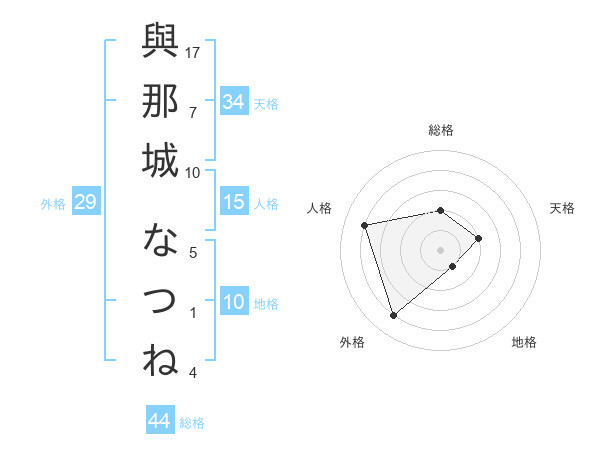與那城 なつねさんの地格は10画の1点!