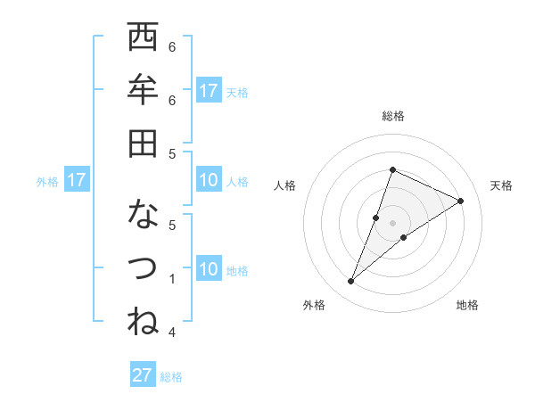 西牟田 なつねさんを姓名の画数から五運を鑑定
