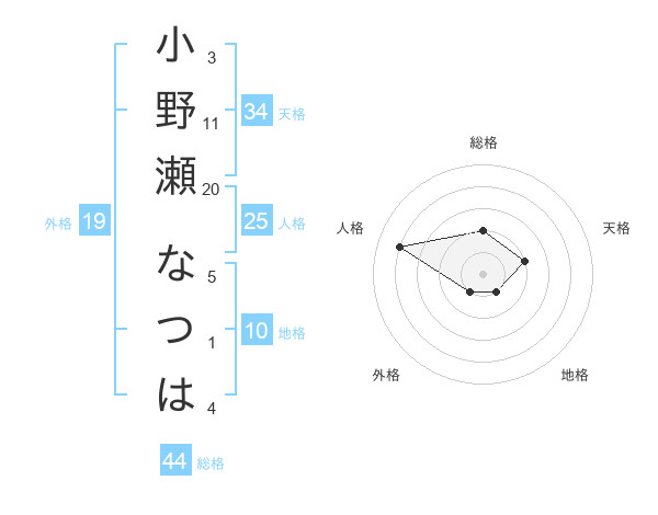 小野瀬 なつはさんを姓名の画数から五運を鑑定