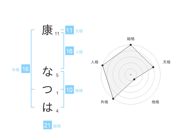 康 なつはさんの外格は16画の5点!