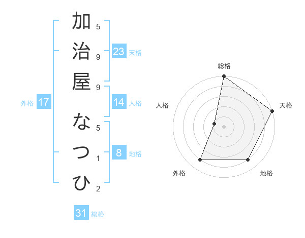 加治屋 なつひさんを姓名の画数から五運を鑑定