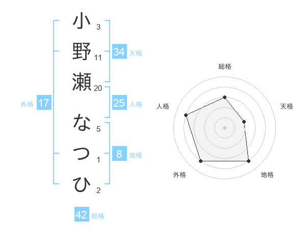 小野瀬 なつひさんの総格は42画の3点
