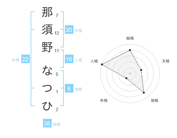 那須野 なつひさんの総格は38画の4点!