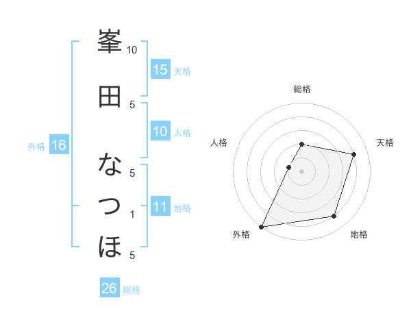 峯田 なつほさんを姓名の画数から五運を鑑定