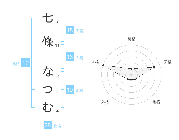 七條 なつむさんの総格は28画の1点!