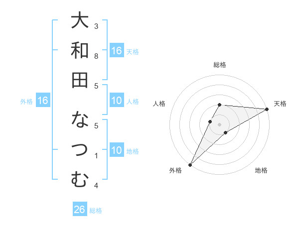 大和田 なつむさんの外格は16画の5点!