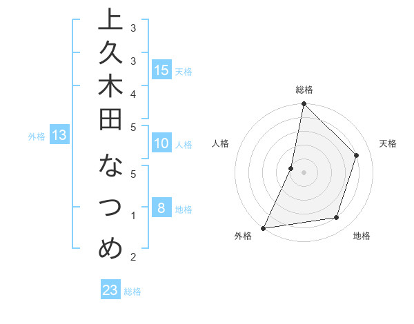 上久木田 なつめさんを姓名の画数から五運を鑑定