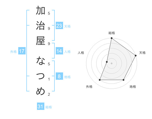 加治屋 なつめさんを姓名の画数から五運を鑑定